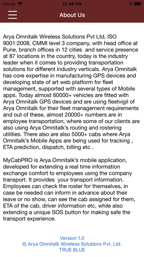 MyCab-AOT is very easy way to check next pickup/drop of the employee.