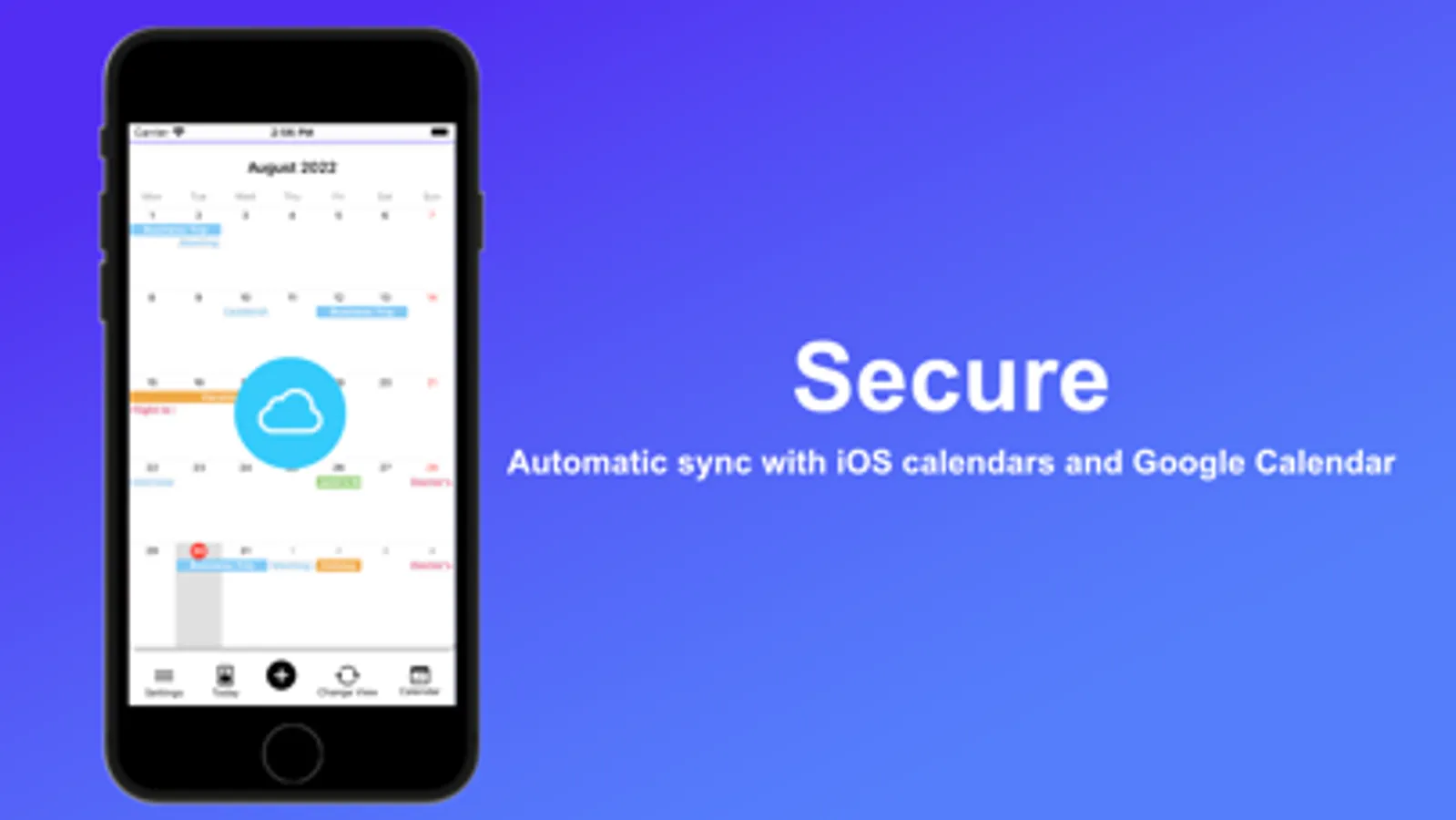 Sync events with iOS calendar and Google calendar, so the events can be synchronized across your Apple devices.