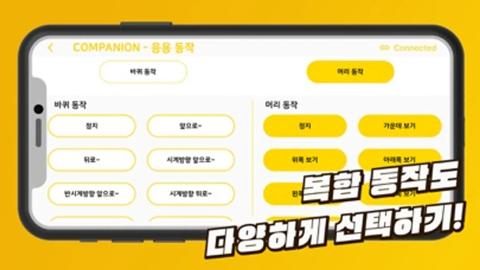 앱을 통해 로봇을 원하는 대로 움직이고 다양한 행동을 취해볼 수 있습니다.