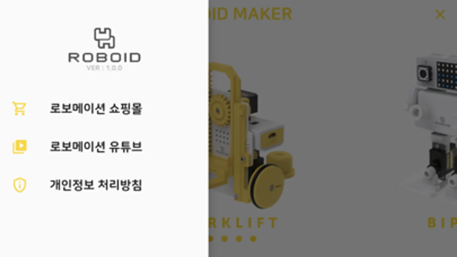 로보이드 메이커는 직접 조립한 교육용 로봇을 조종할 수 있는 애플리케이션입니다.