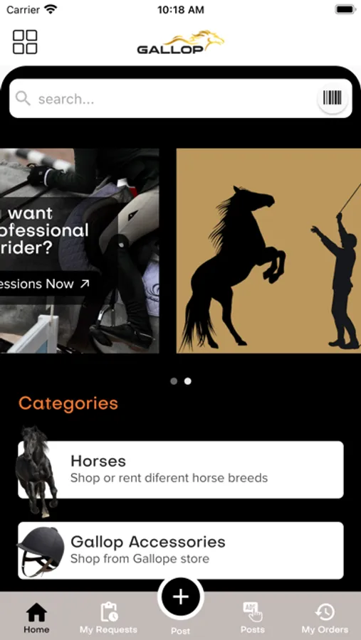 Gallop app deals in feeding pellets, feed supplements, vitamins, horse trailers, as well as horse rider equipments.