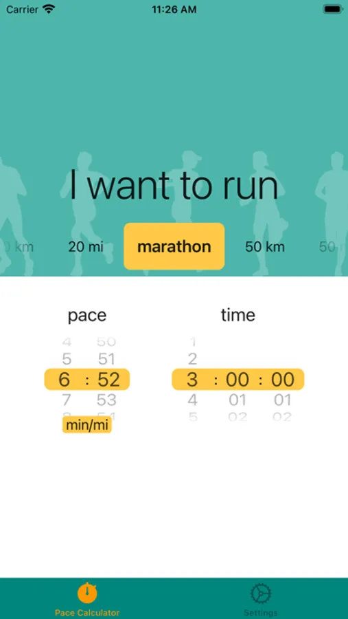 The running calculator for runners, walkers and joggers. Quickly and easily calculate pace and time of your run/walk for any distance from 400m to marathon and beyond. Switch between kilometers and miles.