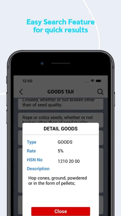 A simple app to search through the various goods and services and their respective GST Rates and details.