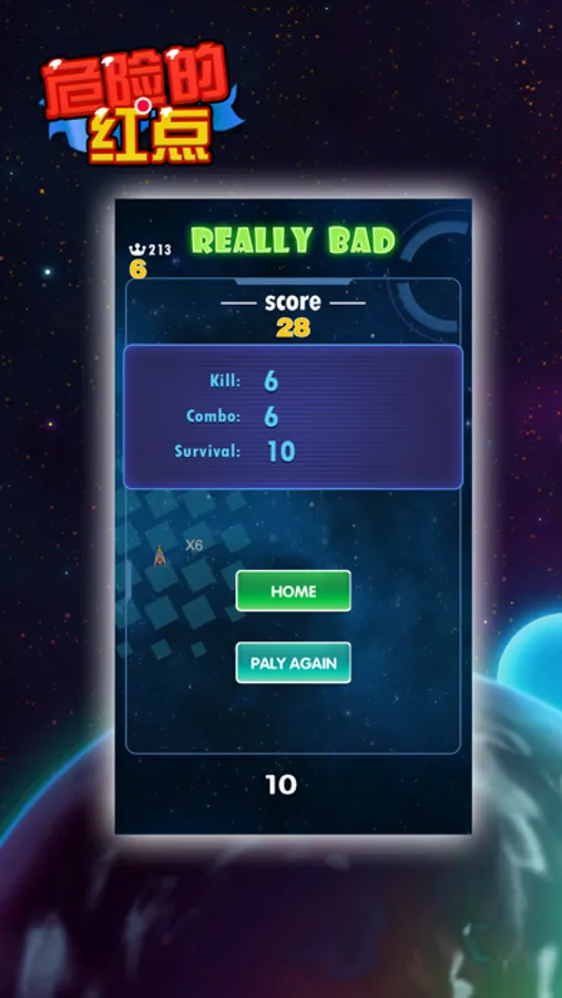 控制飞机躲避红点,获得多种道具,可以利用道具消灭红点,消灭的红点越高,分数越高。