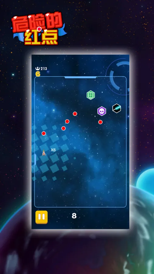 千万不要撞击到红点,一旦撞击,游戏结束。