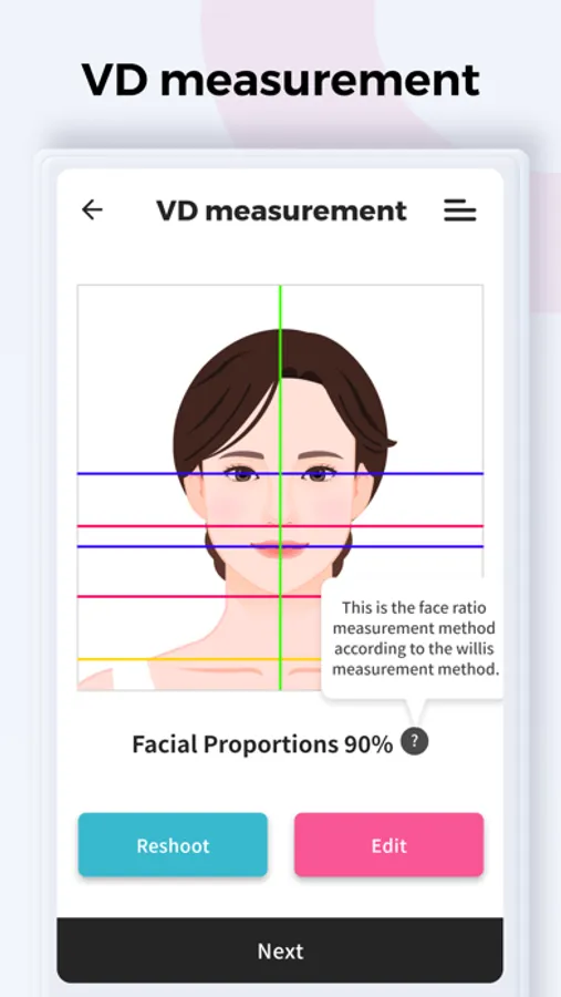 This application calculates the vertical dimension (VD) of oral cavity of edentulous persons using facial photos as input. As a result, it can provide numerical guidelines to assist in restoring the VD to a normal level.