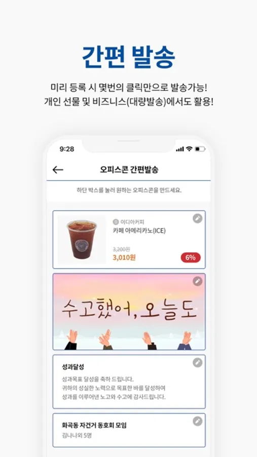 - 미리 등록 시 몇번의 클릭만으로 발송가능! 개인 선물 및 비즈니스(대량발송)에서도 활용!
