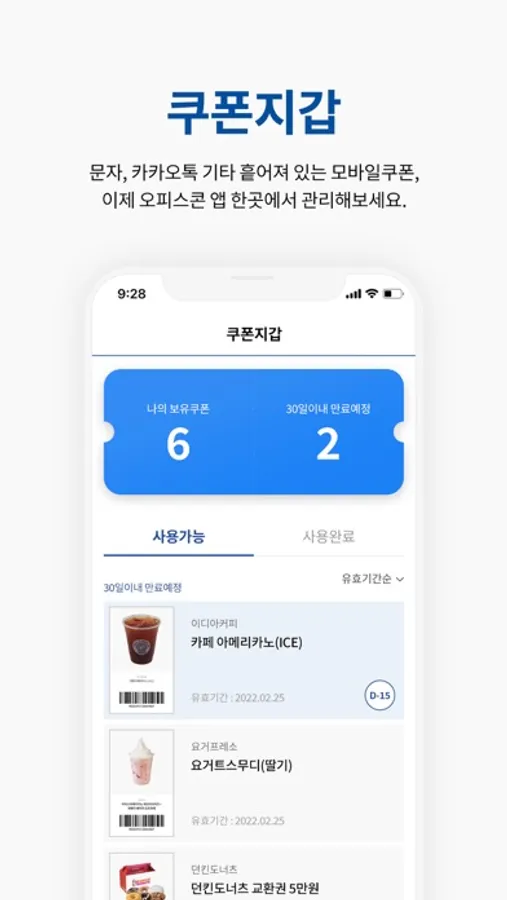 - 문자, 카카오톡 기타 흩어져 있는 모바일쿠폰, 이제 오피스콘 앱 한곳에서 관리해보세요.