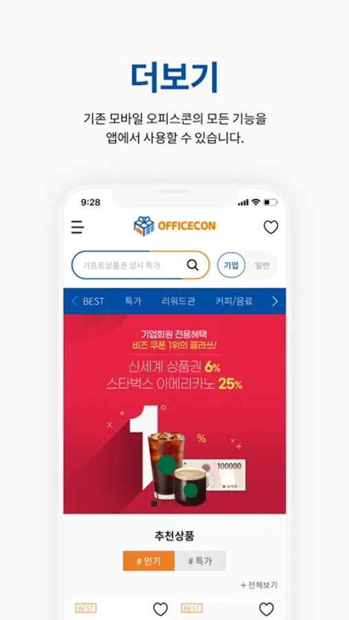 - 기존 모바일 오피스콘의 모든 기능을 앱에서 사용할 수 있습니다.