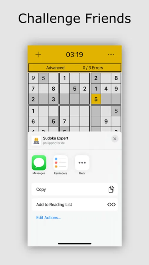 - Challenge your friends: Share your Sudoku with a friend! Who can solve the Sudoku faster?