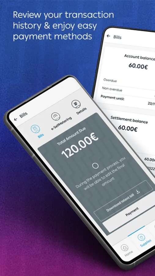 Manage your energy supply and real-estate information while receiving real-time bill updates. Pay them off immediately or set up a credit or debit card standing order.