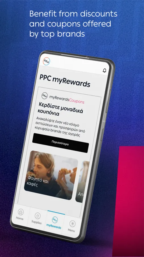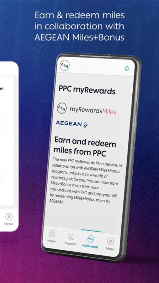 Sign up to myDEI in three simple steps to manage your energy consumption, easily activate products and services, benefit from personalised energy-saving tips from PPC, register your meter readings online, stay up to date on your bills, and pay them easily through the app. Moreover, discover the new PPC myRewards loyalty and rewards program, which includes PPC myRewards Coupons service that provides offers and discounts from top brands, and PPC myRewards Miles that allows you to earn and redeem miles in collaboration with AEGEAN Miles+Bonus.