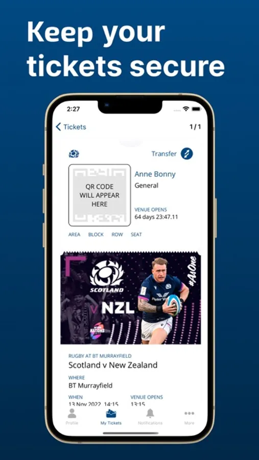 You can use the app to transfer tickets you have bought for friends to their Scottish Rugby Ticketing App.