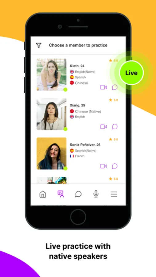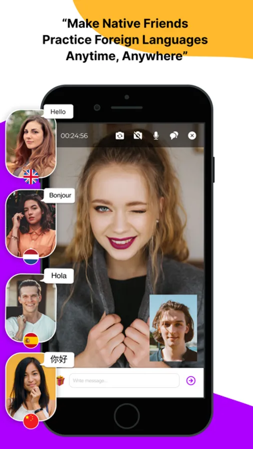 Install now for free! Start live chat or text chat, have fun and improve your foreign language.