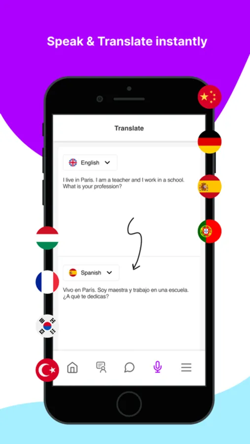 Chat easily with Langugo’s Speak & Translate feature which is an indispensable voice and text translator that allows you to communicate effectively with speakers and in any corner of the globe.