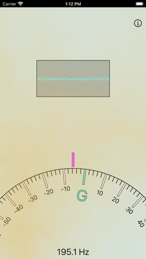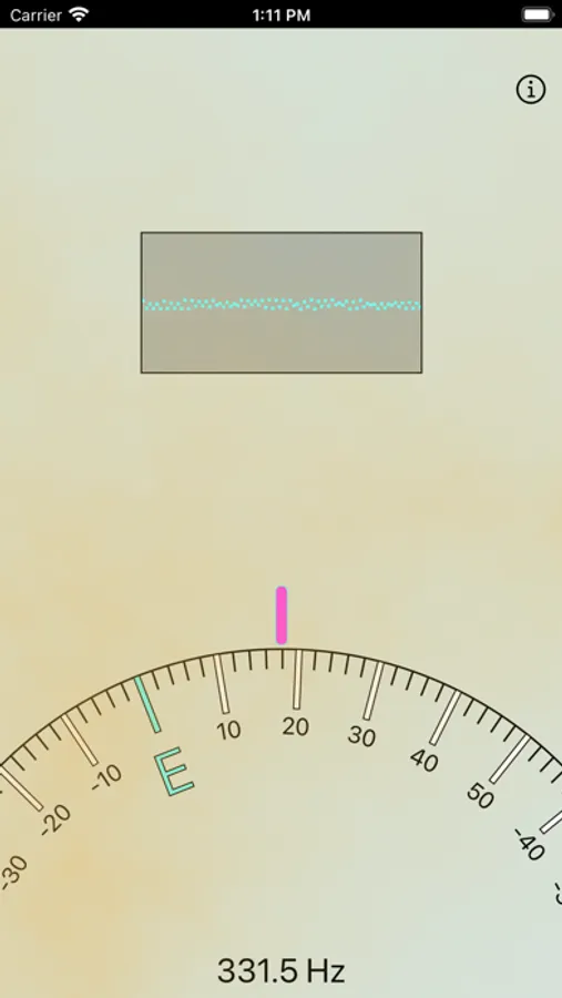 Notes are displayed on as a wheel rotating under the mark. If the note is on the right of the mark it means your tone is lower than needed. If the note is on the left of the mark then your tone is higher than needed. Detected frequency is displayed at the bottom centre.