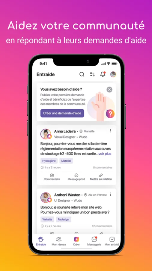 * publier des demandes d’aide et répondre à celles des autres membres de ses communautés de professionnels