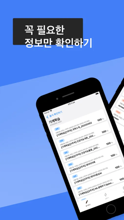 ● 강의 수강여부, 미수강 강의 개수, 강의 진도율 등 꼭 필요한 정보만 쉽게 보여줘요.