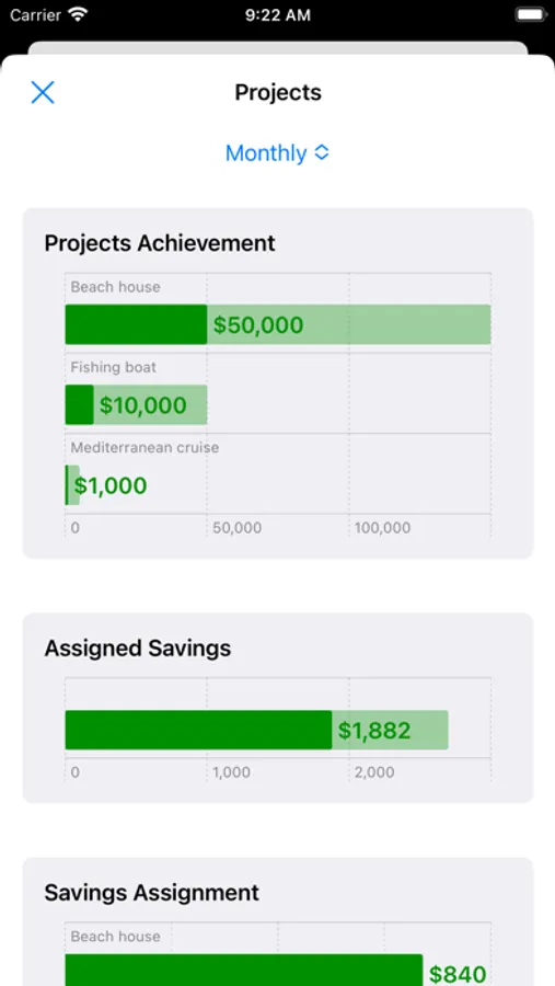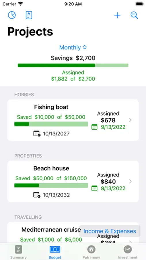 · Set your financial goals (projects) and supervise their timely achievement using your monthly savings