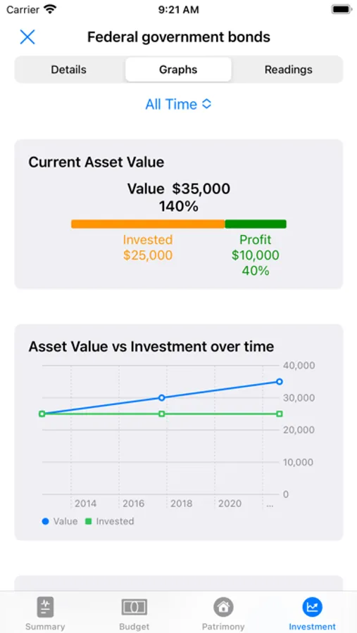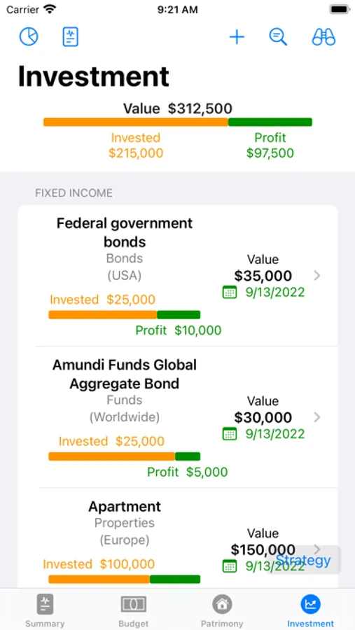 · Visualize and analyze in beautiful charts how your investments evolve over time
