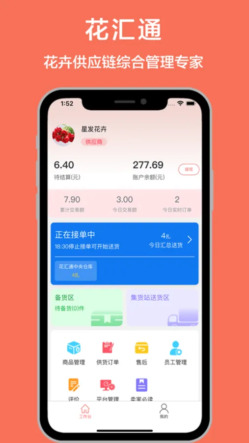 花汇通,专注于鲜花电商供应链共享服务解决方案的一个综合性软件,服务于花农、花商、花店、终端消费者,既可以卖花也可以买花,实现了基地直采,减少中间环节,加快鲜花流通速度,节省成本,让鲜花生意更加简单。