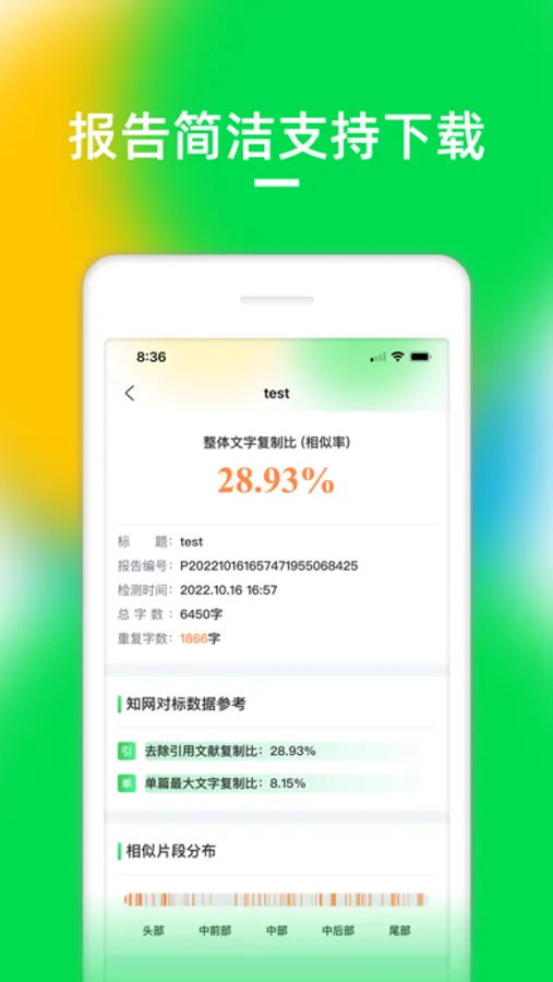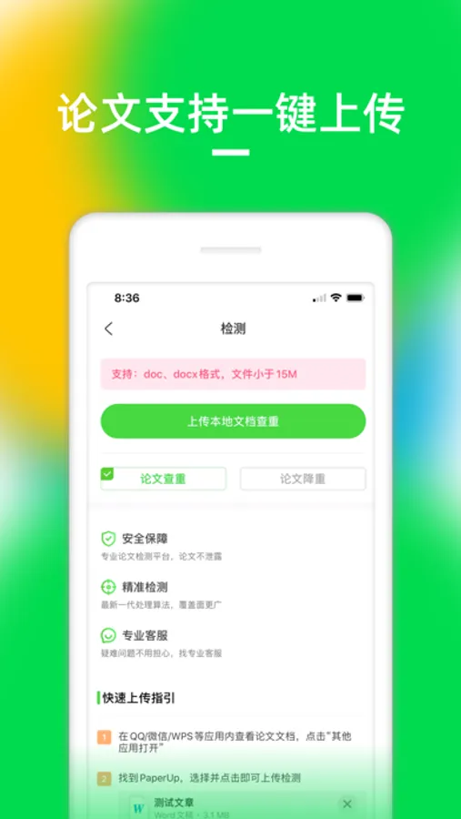 PaperUP论文查重APP是一款论文查重检测、改写降重软件,全国各大高校与企业机构合作必备查重软件,手机在线进行论文查重检测操作方便有快捷,为用户提供精准、快速、安全的论文查重检测修改服务。无论是毕业论文查重、评职称论文检测、期刊发表论文、课程结业小论文都可通过APP进行检测修改,安全准确有效提高论文通过率。检测报告可在手机上查看预览与分享下载,结果报告详细杜绝虚假标红。