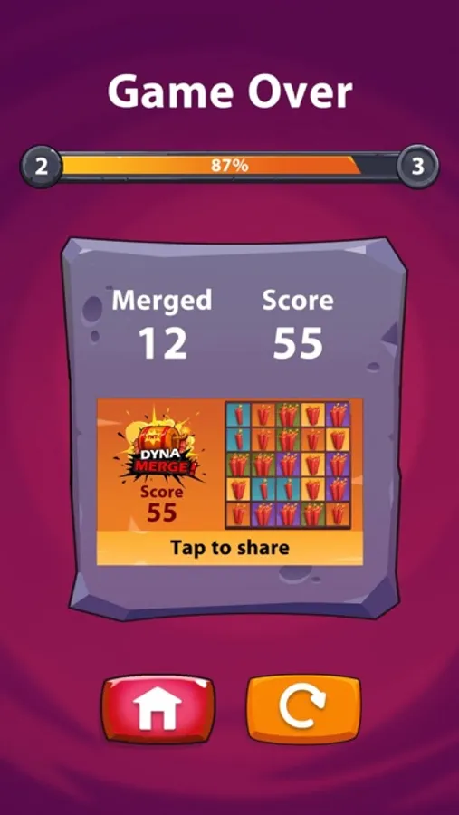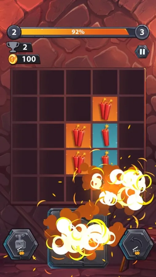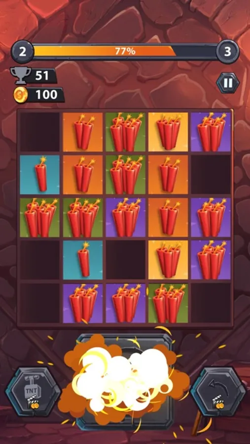 Dynamerge is a match-3 game where you should match at least 3 Blocks to cause them to explode and be replaced by higher level dynamites