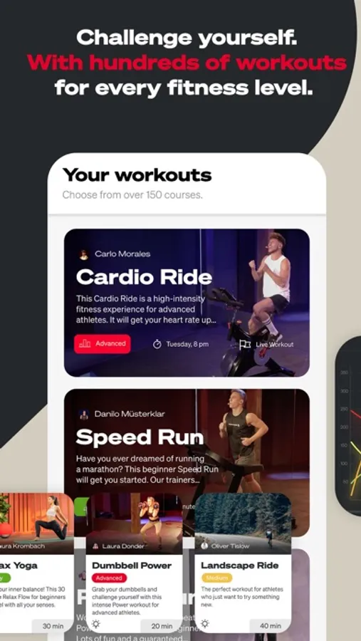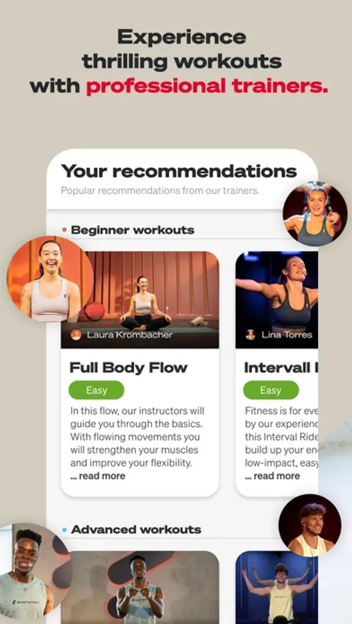 Take your workout to the next level with motivating instructors. Each training session has been specially designed by fitness experts to optimize your health and help you reach your fitness goals. You will find workouts for every level from beginner to advanced.