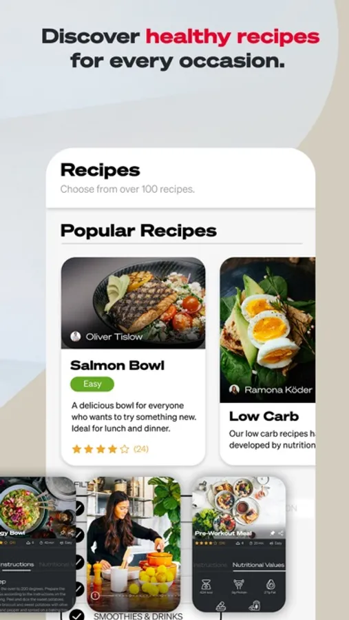 Different healthy recipes to easily recreate, for every occasion, diet, and your individual fitness goals. Developed by our nutrition experts.