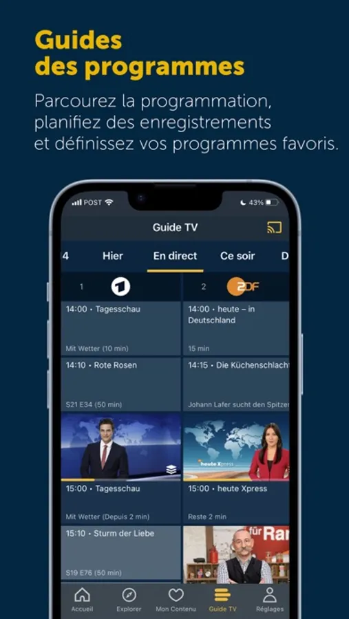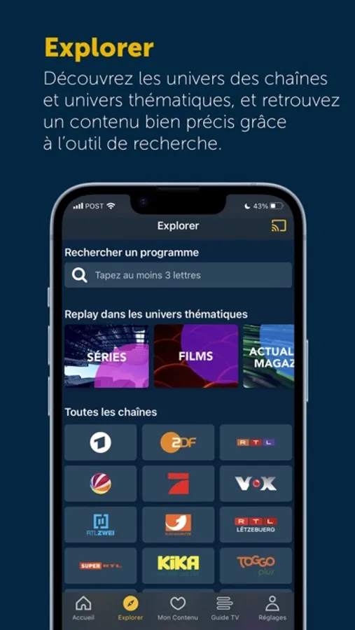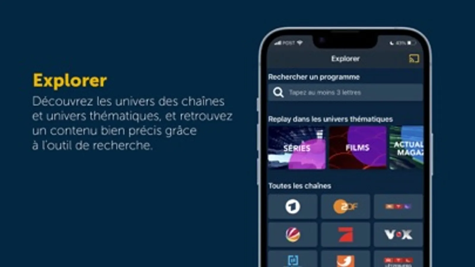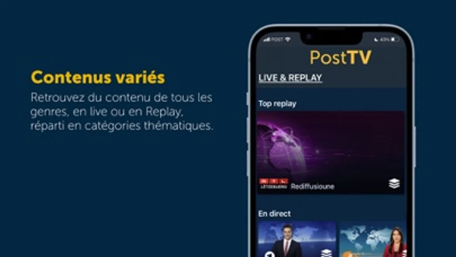 PostTV Go allows you to watch content from more than 120 channels. Thanks to this free application, you can record your programmes remotely and watch your shows and series in Replay.