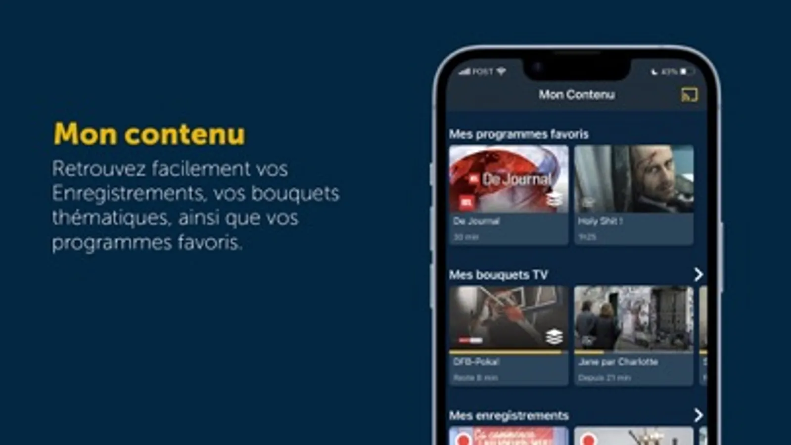 With PostTV Go, watch TV on your smartphone and tablet anywhere in Luxembourg and Europe.