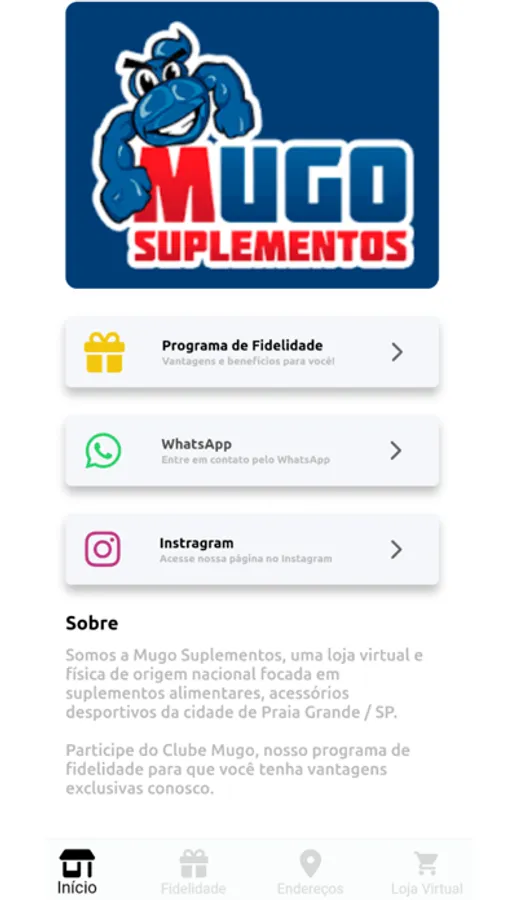 A Mugo Suplementos vem com uma super novidade para todos vocês, nosso novo aplicativo traz mais informações sobre nossas lojas, promoções e acesso ao Clube Mugo, nosso programa de fidelidade.