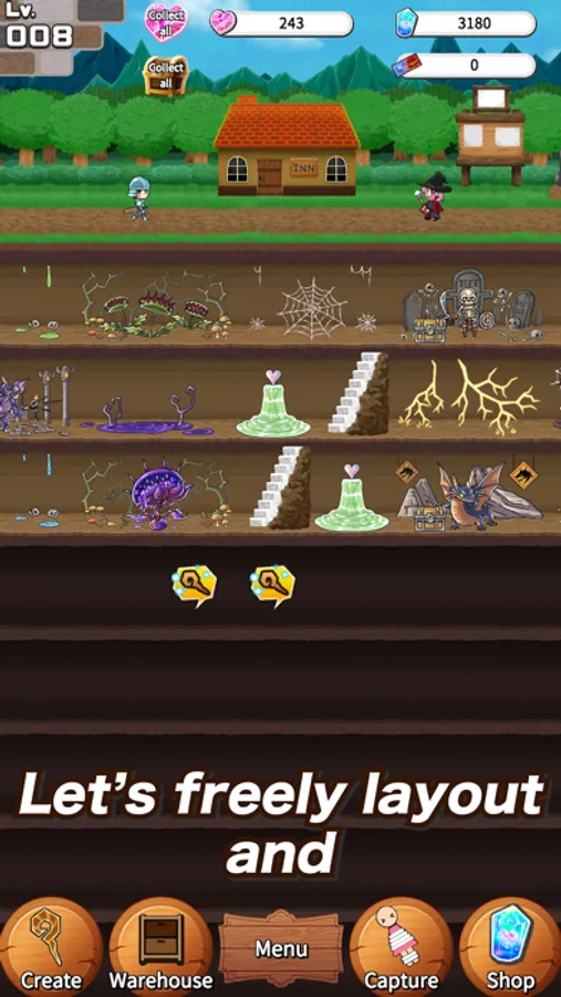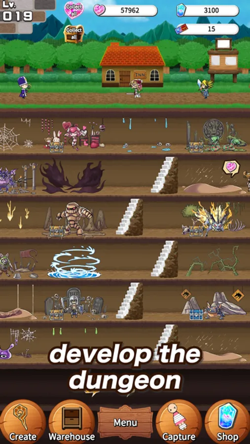 Place the developed stairs, treasure chests and fountains in the dungeon.
