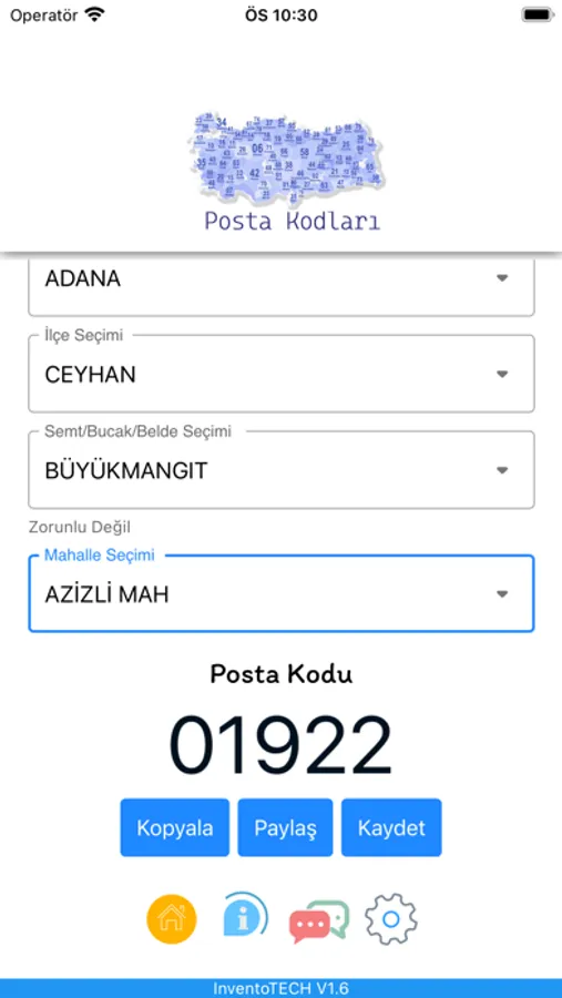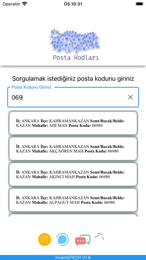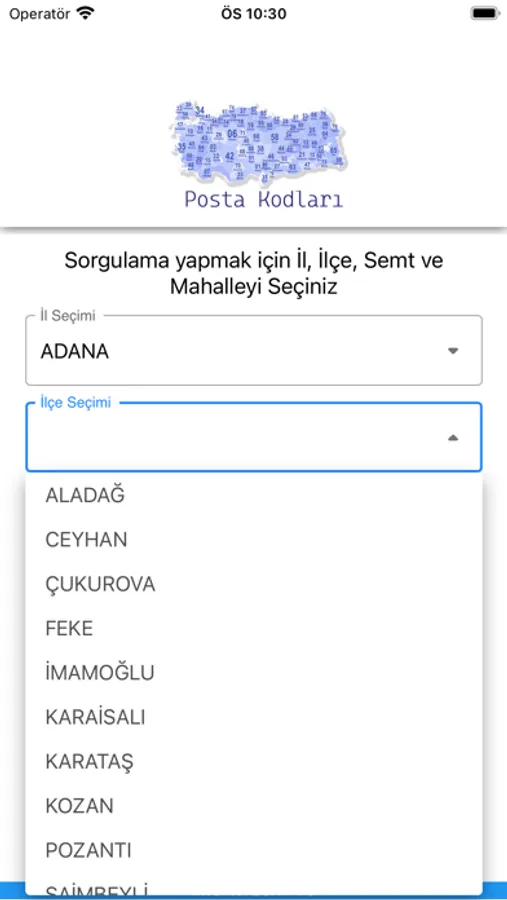 Uygulama ile isterseniz adres bilgileri seçilerek, isterseniz de kod bilgisini girerek sorgulama yapmanıza imkan sağlar.