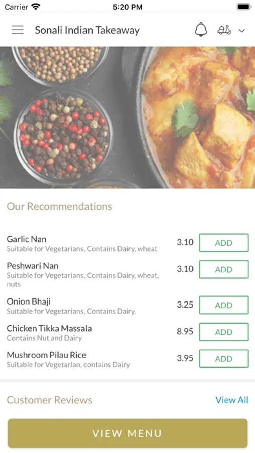 We offer a world of flavours and spices, which all comes together to create a dining experience that will transport you to another world. Our chef prepares all of our authentic dishes completely fresh, we also offer a wide range of authentic Indian cuisine to suit anyone's tastes. We have a new online ordering app which displays our entire menu - so please feel free to browse, find your favourite or try something new, and enjoy our restaurant quality meals in the comfort of your own home.