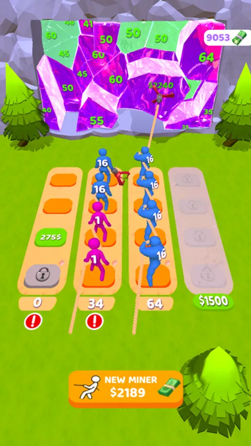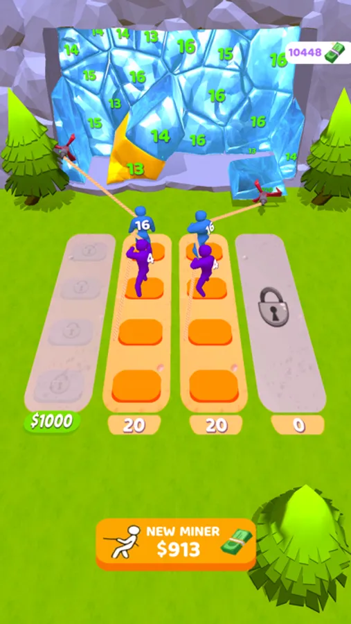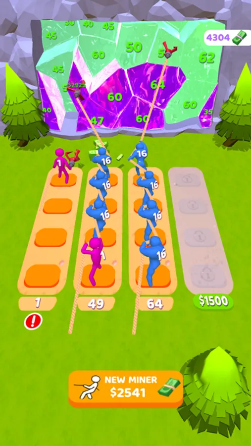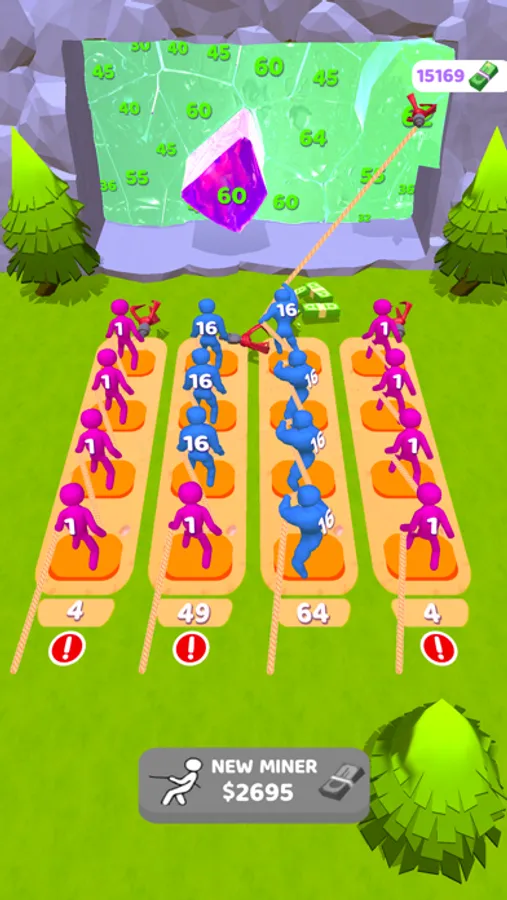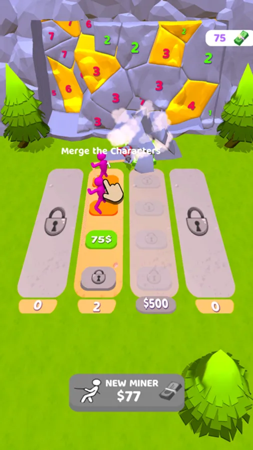 Pull the rocks with the rope. Buy new stickman and merge characters to become the strongest. It's very easy to pull rocks, but it's time for gold and diamonds too!