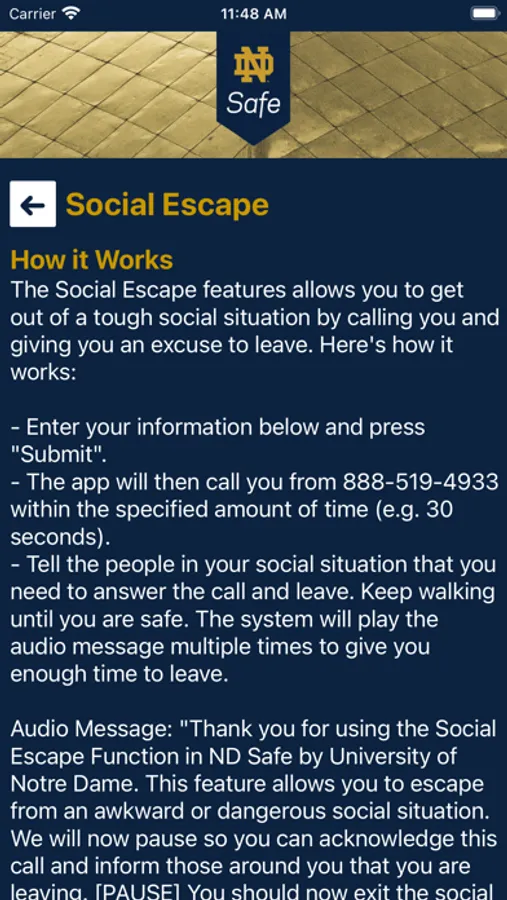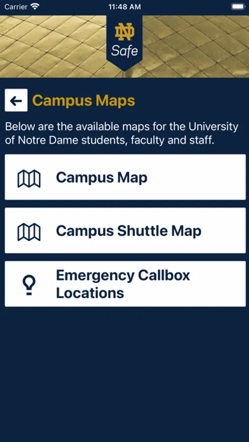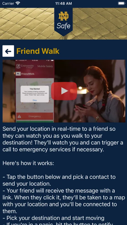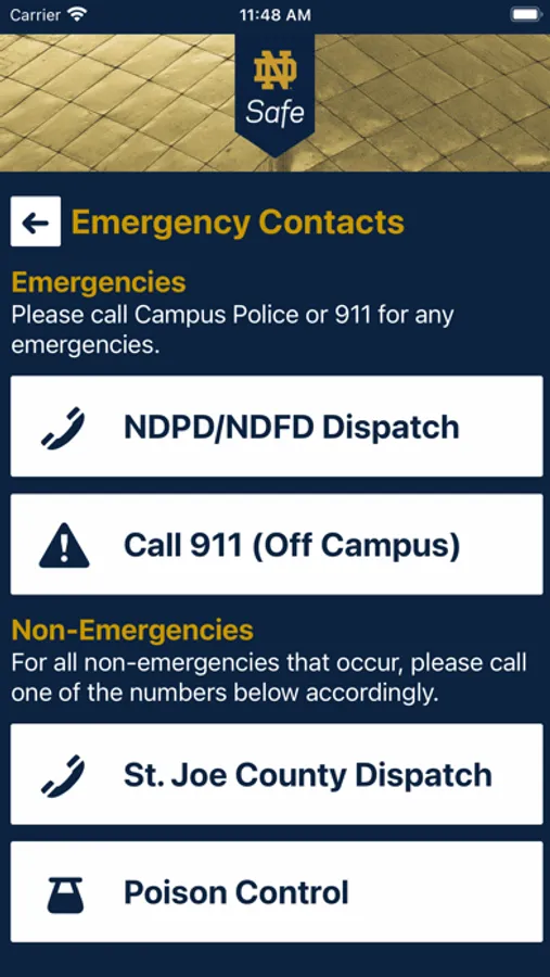 - Safety Notifications: Receive instant notifications and instructions from University of Notre Dame safety when on-campus emergencies occur.