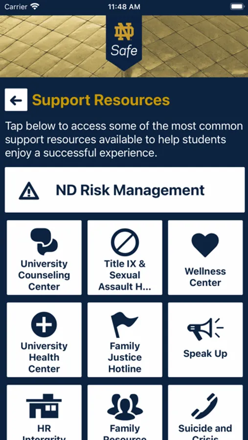 - Support Resources: Access support resources in one convenient app to enjoy a successful experience at University of Notre Dame.