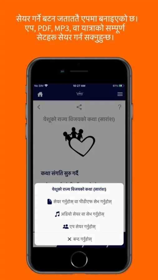 भक्ति भेला एप, सँधै र सदाको लागि नि:शुल्क हो, र यो एप यात्रा सेटहरू वा यात्राको PDF वा MP3 अडियो फाइल अरुलाई बाँड्नमा मद्दत गर्ने तरिकाहरू र याद दिलाउने कुराहरुले भरिएको छ। एपले उपयोगी सिकाउने स्क्रिनहरू, प्रशिक्षकसँग कसरी जोडिने भन्ने तरिकाहरु, जीवनका आवश्यकताहरूसँग सम्बन्धित अरु विषयहरू र थप कुराहरू समावेश गर्दछ।