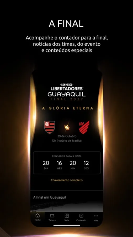 Bienvenidos a La Gloria Eterna: la app Oficial de la Final de la CONMEBOL Libertadores 2022 que se disputará en Guayaquil. Contenido exclusivo, noticias, videos y todo lo que tienes que saber de la final del torneo más importante del continente.