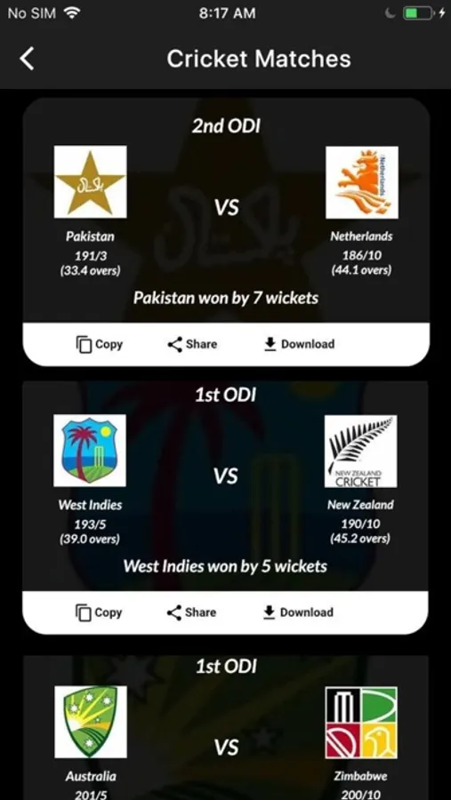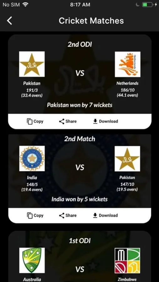 Please download our app and share it with friends and family so that all can enjoy International Cricket on the go. Also don't forget to rate it.