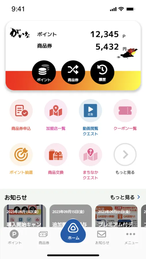 地域共通のポイント(がいなポイント)を貯める・利用することで地域住民と店舗あるいは行政などを結び、地域の活性化を目指している事業です。