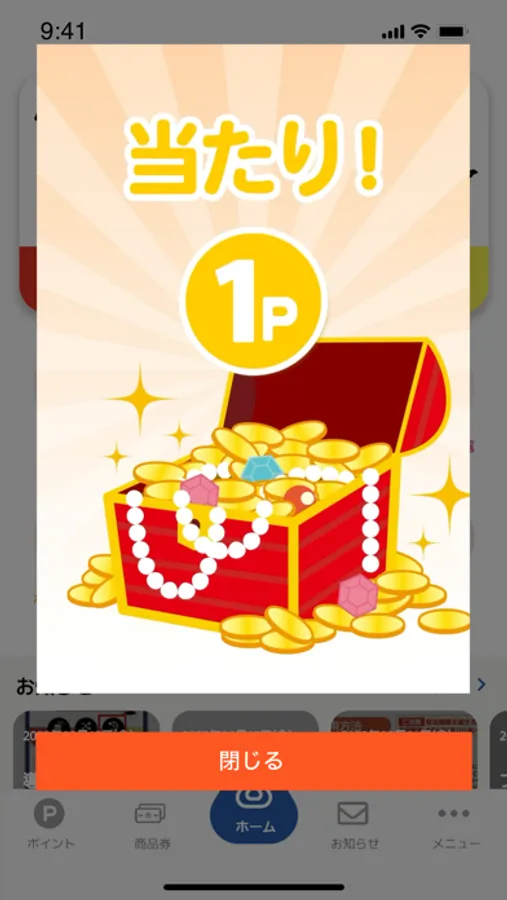 「お宝のカギ」を「宝箱チャレンジ」で利用するとポイントが当たる抽選に参加できます。