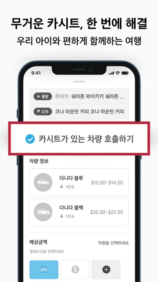 - 차량 호출 시 카시트 옵션 선택을 터치 한 번으로 간편하게 해결