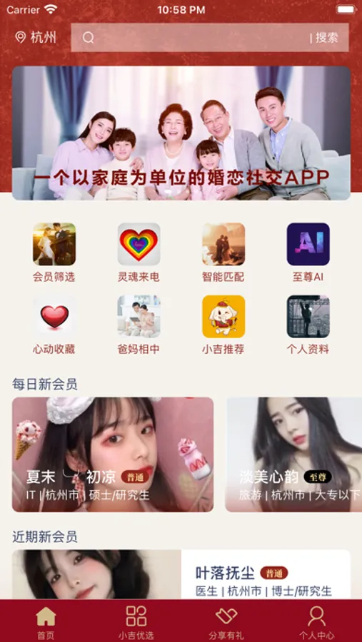 良缘吉成是一款创新的真实、严谨、高端的门当户对婚恋社交APP。