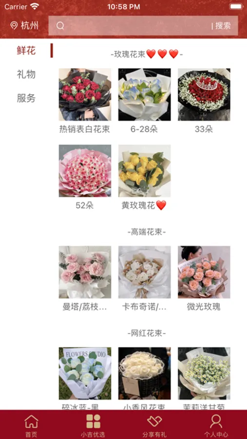 4、小吉优选,精选鲜花、礼物,提升社交体验!