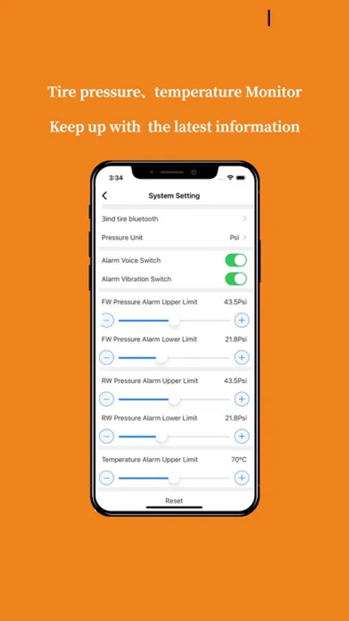 The tire pressure/temperature detector can be used to keep track of the working condition of the tires, and to reduce accidents caused by abnormal tires and ensure safety during riding.