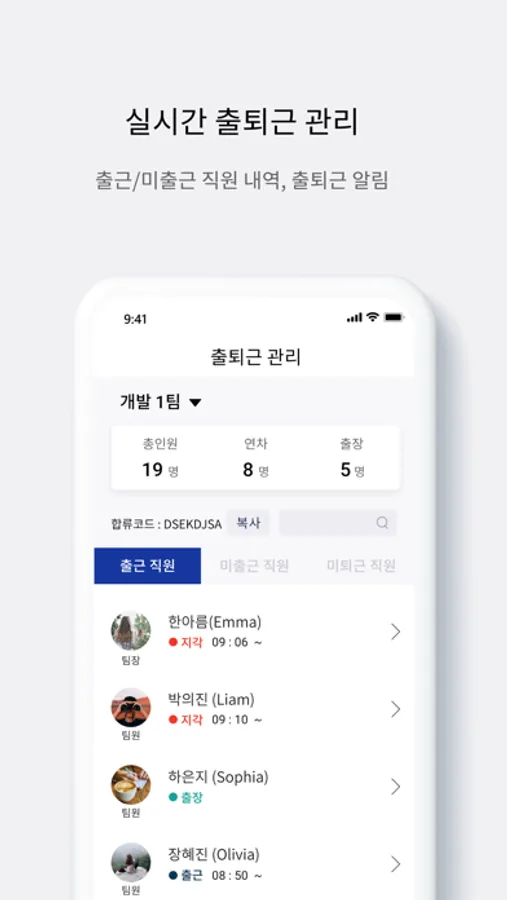 5. 출근 직원과 미출근 직원을 한눈에 확인