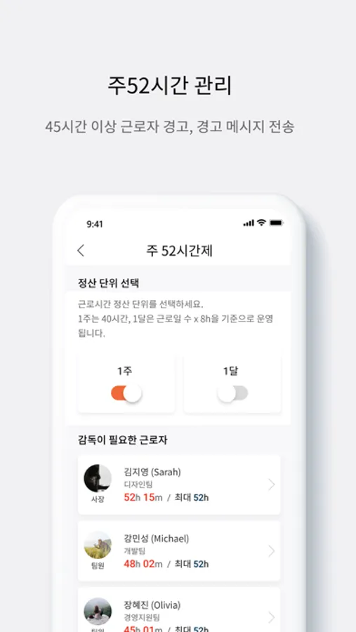 3. 45시간 이상 근로한 직원에게 메시지 전송