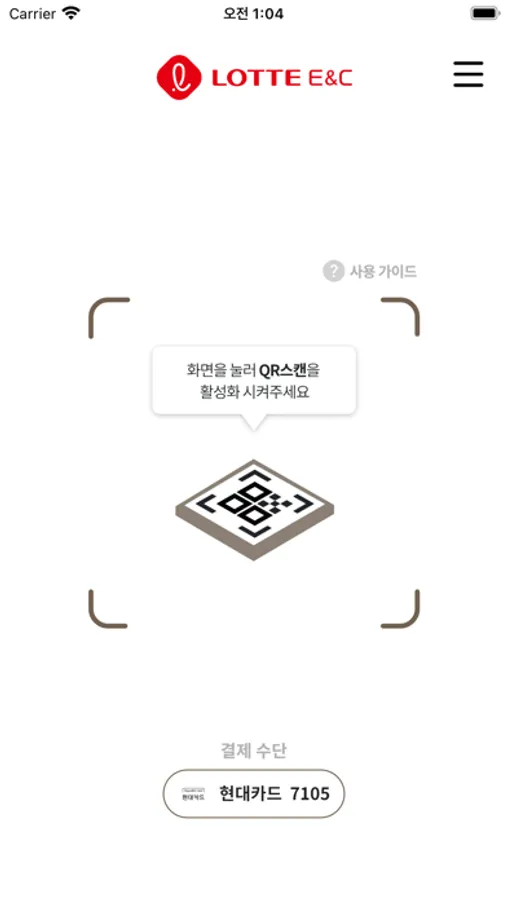 충전기에 있는 QR코드를 촬영하여 충전을 시작하세요.